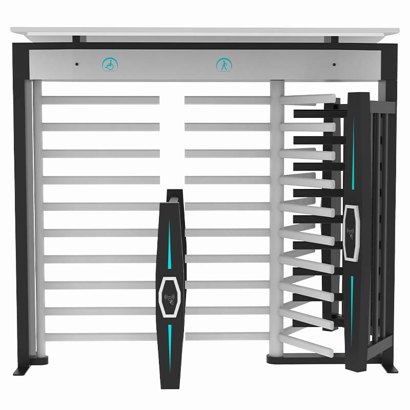 Tornello a tutta altezza con cancello per sedia a rotelle È un tipo di tornello pedonale utilizzato per il controllo dell’accesso delle persone disabili in sedia a rotelle, la cui larghezza della corsia deve essere di almeno 900 mm. Il tornello per disabili è solitamente progettato per persone disabili, facilitandone gli spostamenti. Disabili e sedie a rotelle possono attraversarlo facilmente. Il tornello per disabili è diverso dai tradizionali tornelli a barriera e dai tornelli a tripode. L’accesso non è limitato da dispositivi fisici come la piastra ad alette e l’asta di blocco. Il tornello per disabili non ha alcun principio di movimento, ma solo una funzione di riconoscimento induttivo.
